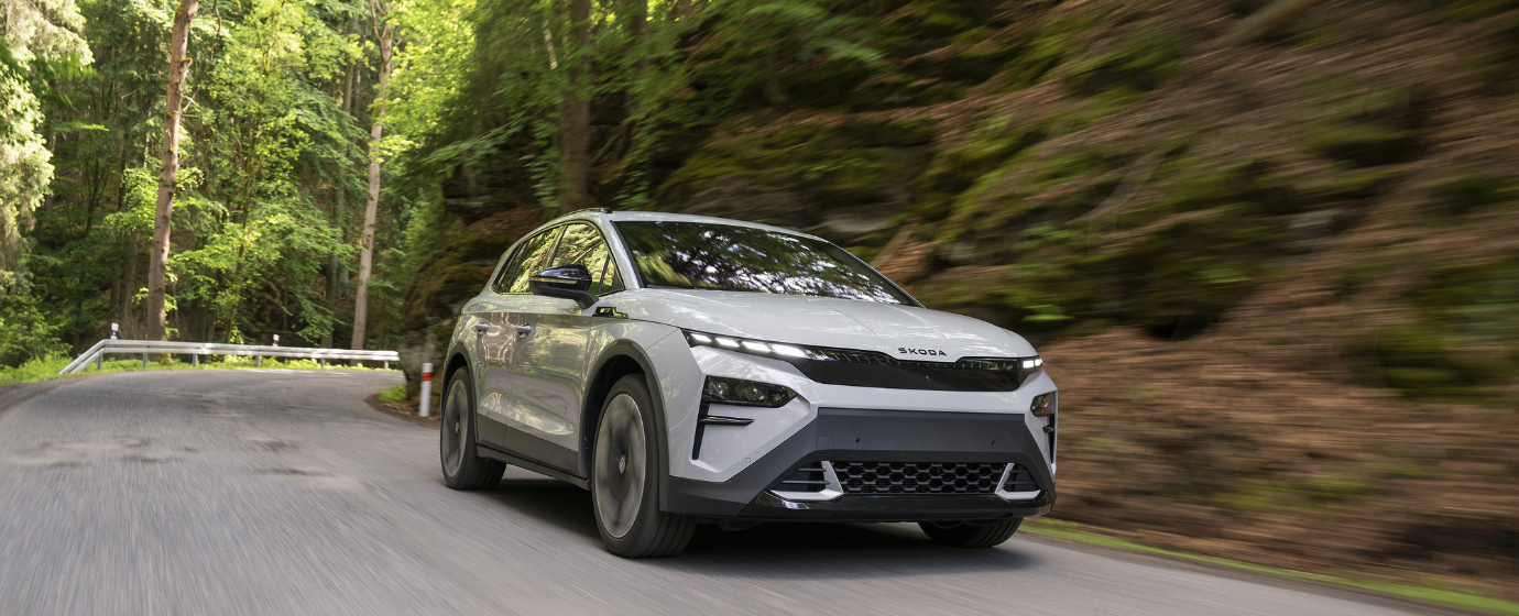 Descoperă cea mai recentă inovație electrică din familia SUV-urilor Škoda, menită să-ți trezească curiozitatea. Noua Škoda Elroq marchează o premieră importantă pentru marcă, fiind primul SUV compact complet electric. Proiectată în stilul rafinat al limbajului de design Modern Solid, Elroq îmbină robustețea, funcționalitatea și autenticitatea și se remarcă prin inscripția Škoda în crom închis de pe capotă. Farurile LED Matrix, mai subțiri și mai elegante, se integrează perfect în linia aripilor, oferind un aspect electrizant.