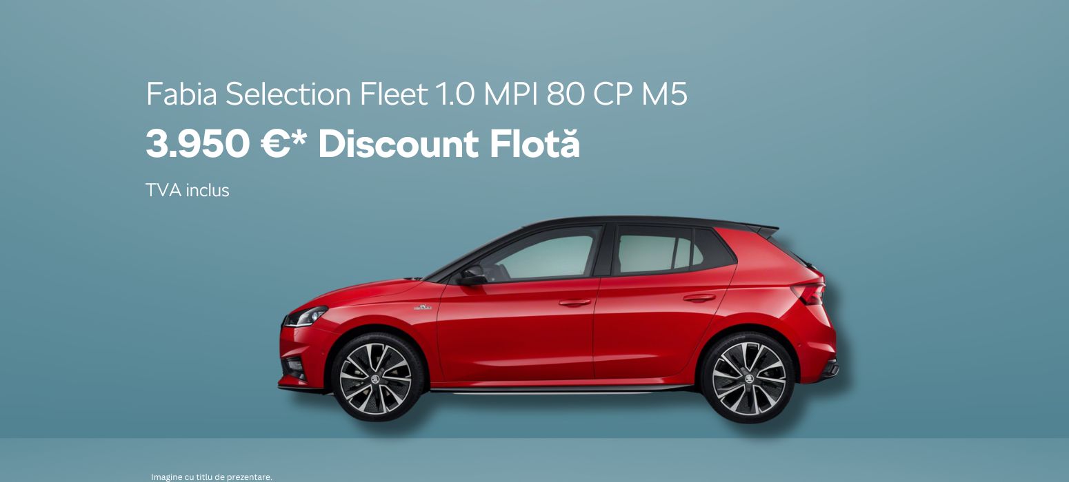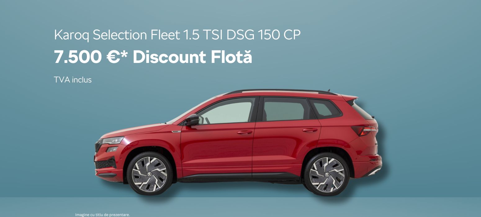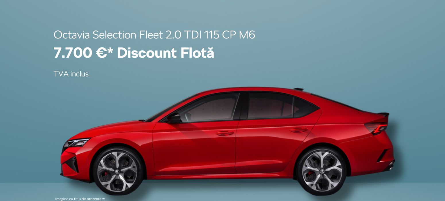*La achiziția a minimum 5 unități dintr-o categorie de model, te califici la un anumit prag de discount, de până la 8.800 euro, valabil pentru modelul Superb Selection Fleet 1.5 TSI DSG 150 CP.